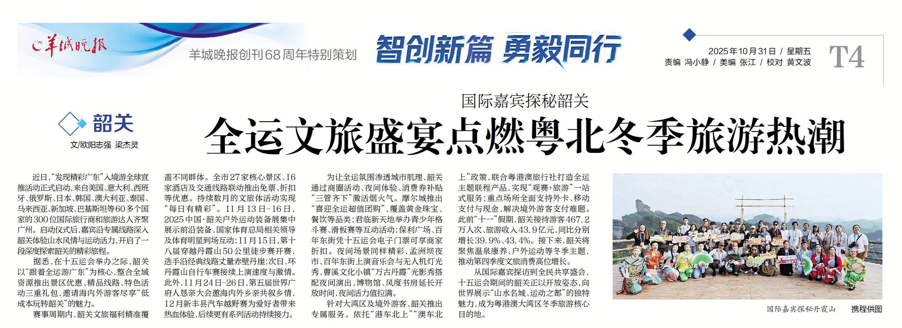 针对大湾区及境外游客,韶关推出专属服务。依托“港车北上”“澳车北上”政策,联合粤港澳旅行社打造全运主题联程产品,实现“观赛+旅游”一站式服务;重点场所全面支持外卡、移动支付与现金,解决境外游客支付难题。此前“十一”假期,韶关接待游客467.2万人次、旅游收入43.9亿元,同比分别增长39.9%、43.4%。接下来,韶关将聚焦温泉康养、户外运动等冬季主题,推动第四季度文旅消费高位增长。